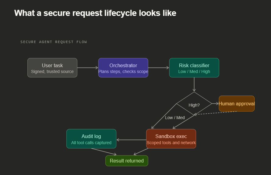 Bottom line The most dangerous property of AI agents they follow instructions is the same property that makes them useful. You cannot remove it. You can build an architecture where the instructions they follow come only from verified, trusted sources, where their actions are contained and monitored, and where a human stands between the agent and irreversible consequences. That is what AI agent security in 2026 actually means.